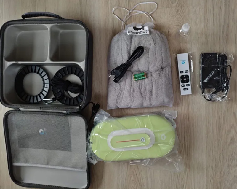Модель для уборки дома отличает богатая комплектация. Помимо 14 или 26 салфеток, которые можно приобрести и отдельно, покупатели получают емкость для моющей жидкости, 2 запасных кольца и батарейки для пульта (ААА). Однако и это еще не все: в комплекте с мойщиком идет презентабельный и надежный кейс серого цвета. Он идеален для хранения робота и всех комплектующих.