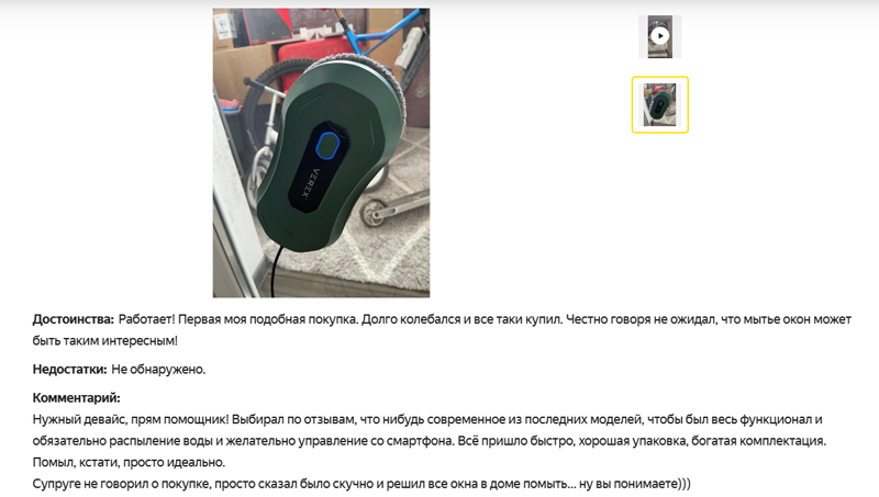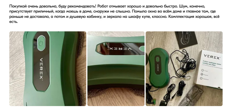 Красивый и компактный прибор некоторые покупатели выбирают на роль подарка, другие называют его «самым удачным девайсом, приобретенным за последнее время» для дома. Третьи считают, что VEREX M1 PRO радует лучшим соотношением цены и качества. Да, этот робот-мойщик еще довольно «молод», поэтому отзывов на модель пока не слишком много. Однако оценки он получил хорошие, причем на самых популярных торговых площадках/сервисах:
