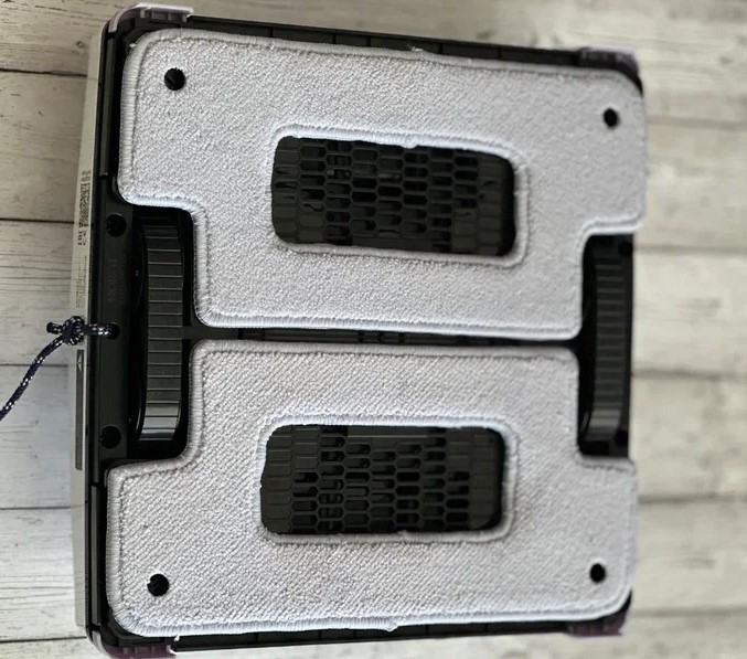 С обратной стороны можно увидеть вакуумные датчики, для них предусмотрены прорези в салфетках. Углы дополнены бамперами с датчиками касания. Все это разработано для повышения качества мытья и минимизации слепых зон.