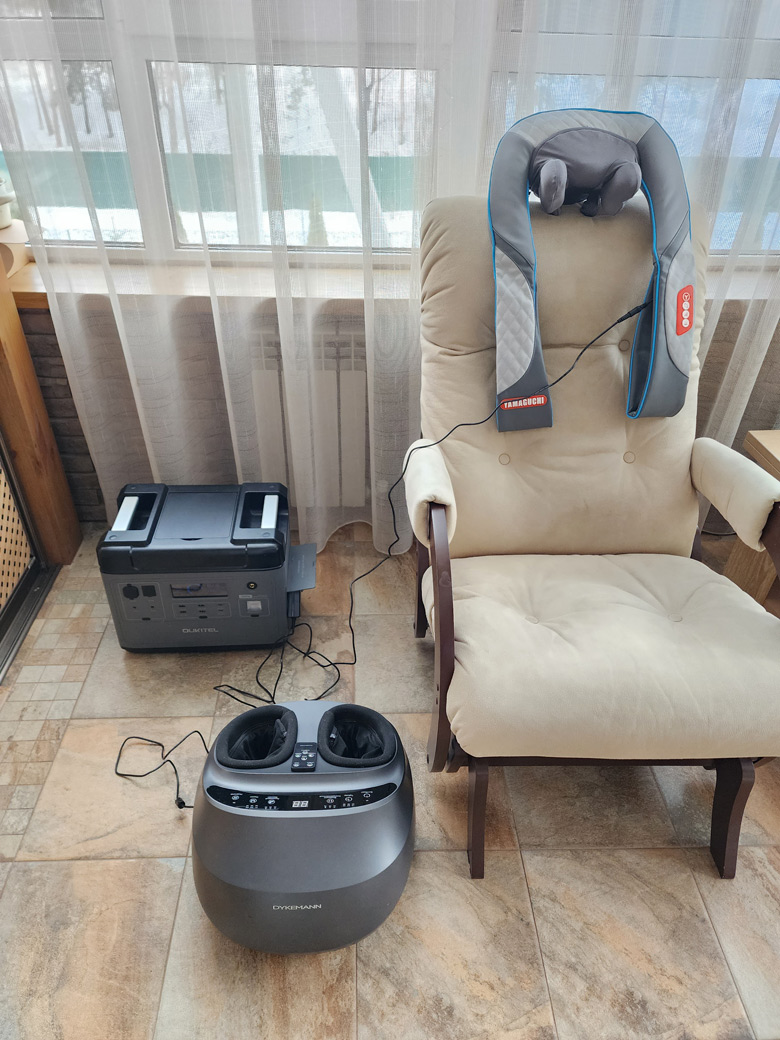 Работает массажер от сети, придется располагаться в непосредственной близости к розетке, шнур питания не особо длинный. Удлинитель в помощь. Или как сделал я, организовал “релакс” зону, установив рядом с креслом мощный пауербанк от Oukitel p2001e, к нему и запитываю массажеры. У меня еще есть массажер для ног Dykemann Warmfoot K-33, о нем расскажу в отдельном обзоре.