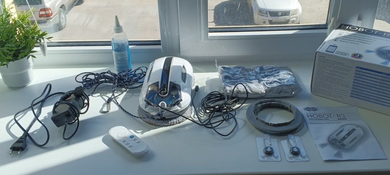 Далеко не все мойщики окон могут похвастаться лучшей комплектацией. HOBOT-R3 Ultrasonic выгодно отличается от них, ведь в набор входит все необходимое. Помимо самого робота покупатели получают такой комплект аксессуаров: