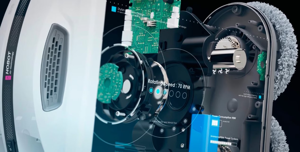 Для запуска HOBOT-R3 достаточно нажать одну кнопку на корпусе. При включении аппарат проводит автоматическую проверку своих функций и датчиков поверхности. Принцип работы устройства прост: два ультразвуковых распылителя разбрызгивают моющее средство по всей поверхности стекол, салфетки вращаются и очищают окна. Планирование маршрута происходит с использованием искусственного интеллекта.