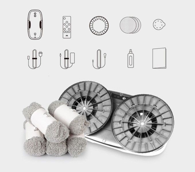 Модель из нашего обзора подойдет не только для окон, но и для кафеля, зеркал и других гладких поверхностей. Вместе с роботом Ксиаоми покупатели получают необходимый комплект аксессуаров для уборки. Как правило, он включает следующие дополнения: