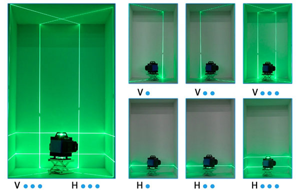 Лазерный уровень - измерительный прибор. Отсутствие погрешностей для него один из важнейших факторов, и производитель HIBIRU это прекрасно понимает. Инструмент имеет функцию автоматического выравнивания и может настраиваться по всем плоскостям, включая наклонные. Точность линий идеальная, а их тут очень много: по 8 на вертикальную и горизонтальную плоскость.