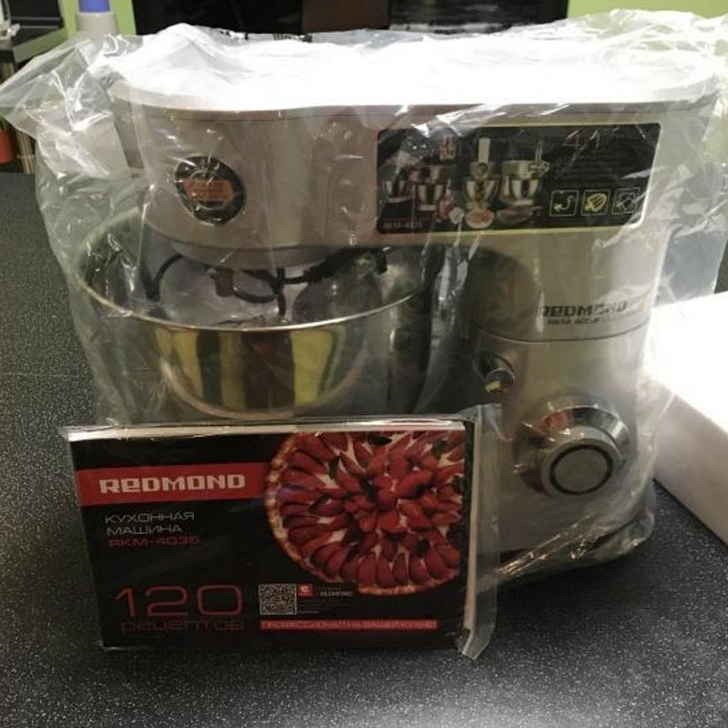 Отзывы по данному товару пока что не столь многочисленны, как по некоторым давно известным аналогам, так как эта разработка Редмонд вышла совсем недавно, но все же их уже вполне достаточно для объективной оценки устройства. В числе основных достоинств кухонной машины большинство довольных покупателей приводят отличную работу с тестом для шарлотки и другой выпечки, устойчивость, удобство эксплуатации и добавления ингредиентов в процессе приготовления. Также, согласно отзывам, модель показывает отличные результаты и развивает очень хорошую скорость при приготовлении картофельного пюре, зефира и теста для хлеба. Покупатели, дополнившие базовый прибор мясорубкой, также отмечают эффективность и однородность полученного продукта, прежде всего, фарша.