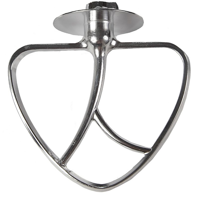 Плоская насадка для взбивания продуктов чуть более густой консистенции предназначена для приготовления густого крема, шоколадной глазури и даже легкого текста для бисквита. Она изготовлена из цельного куска металла, как и третий сменный компонент, и отличается высокой прочностью.